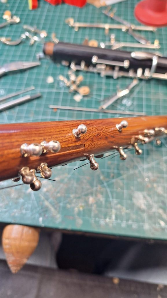 Once all is installed and functional, the instrument is thoroughly play-tested to check all the new elements interact correctly and smoothly with the existing keywork. Once we are totally satisfied, we highly polish the pieces and send them away for fresh silver plating. This finishing touch really makes the parts look like they belong, also reassuring the technicians involved. Despite all the hours of work, the best possible end result gives the impression that nothing’s been done at all!